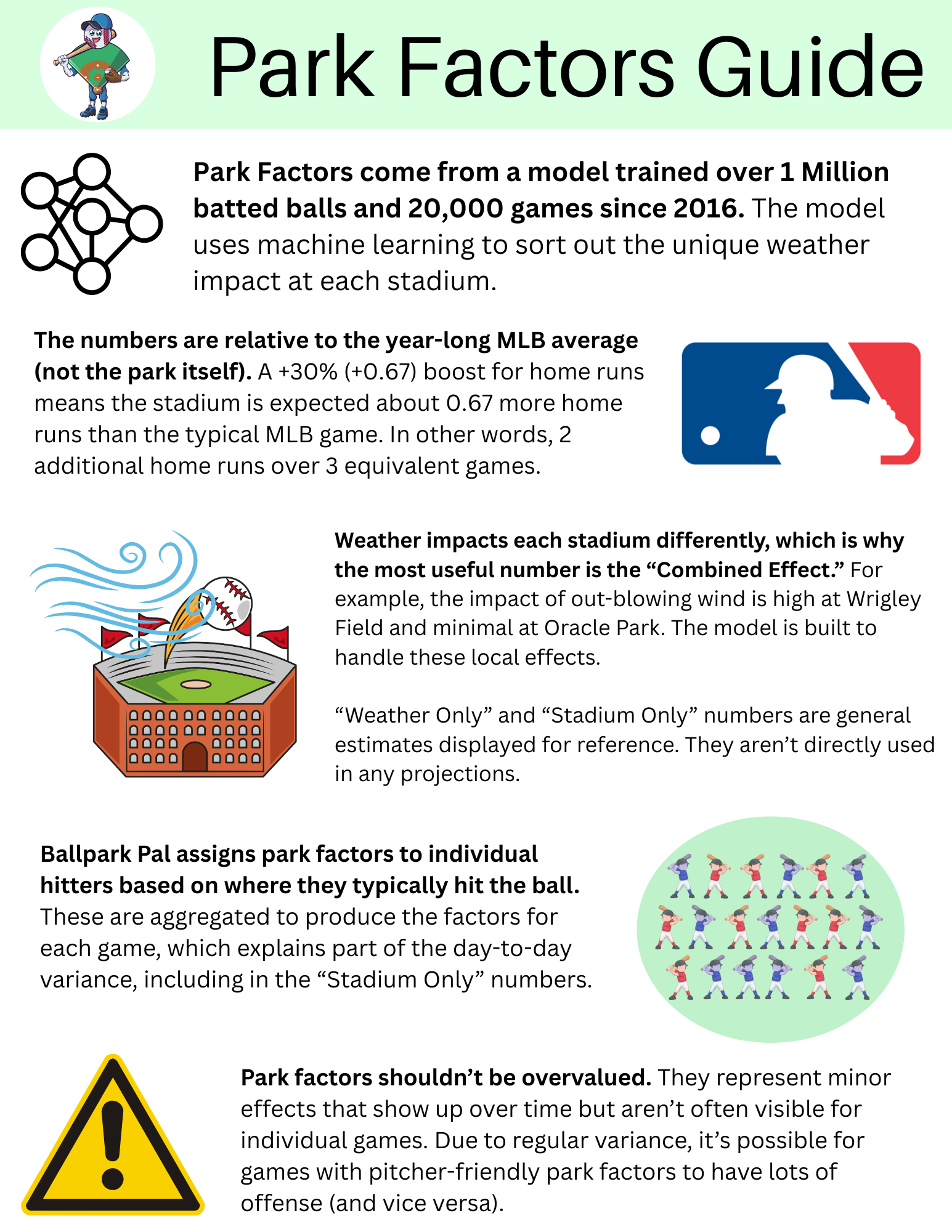 | Game | HR | 2B/3B | 1B | Runs | Receptive | Hour 1 | Hour 2 | Hour 3 | Hour 1 | Hour 2 | Hour 3 | Humidity | Pressure | Outfield Size |